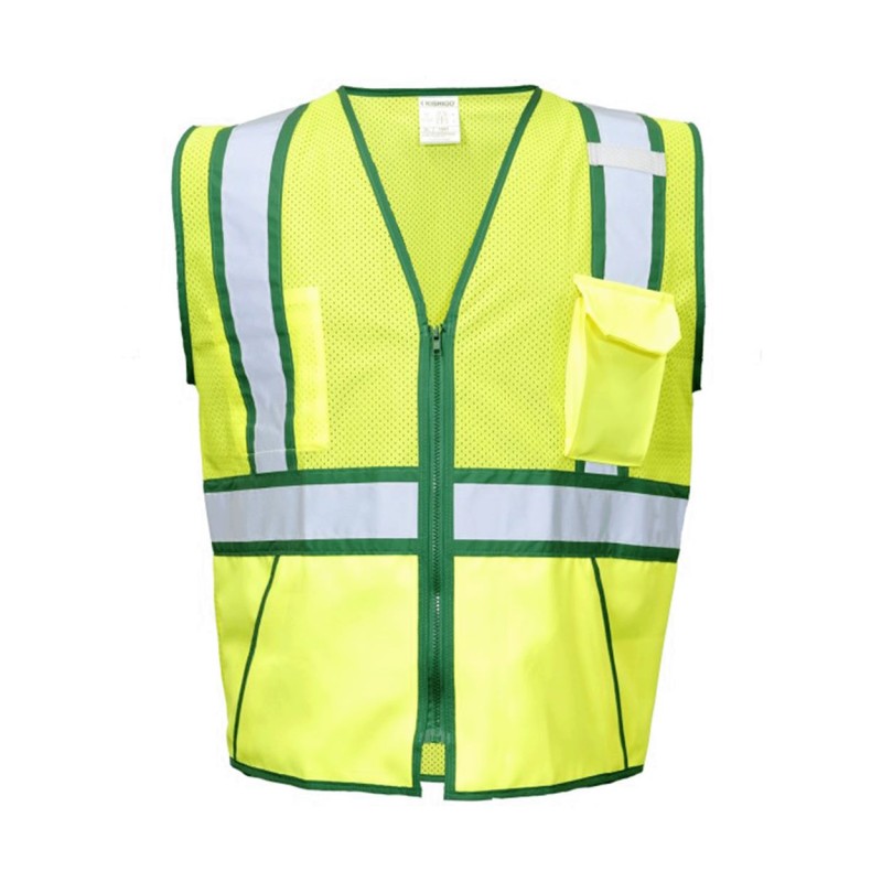 - Reflective colored trim on armholes, hem and pockets to keep you visible in the work zone