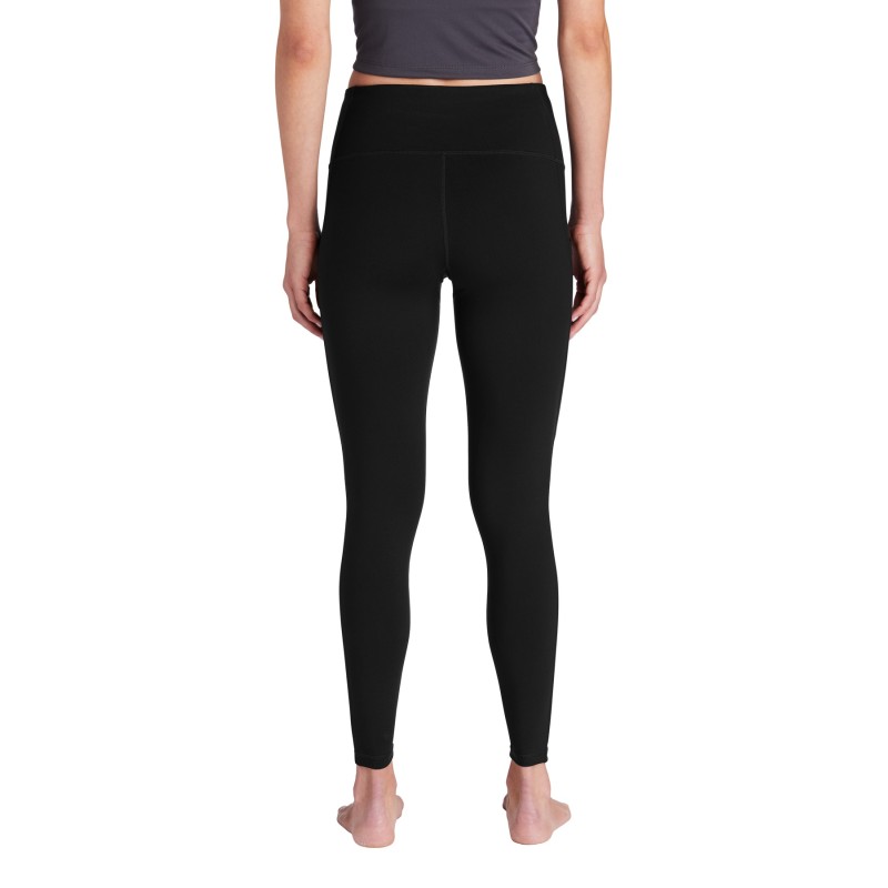 This moisture-wicking legging has stretch for movement and a higher rise. It features an integrated pocket for cell phones, keys or small essentials.