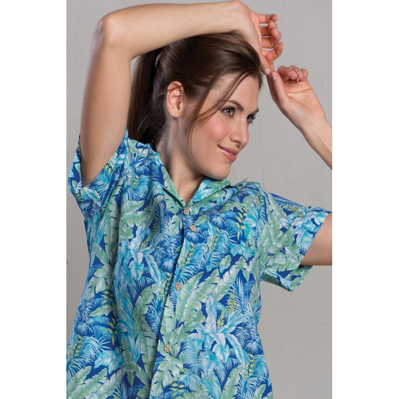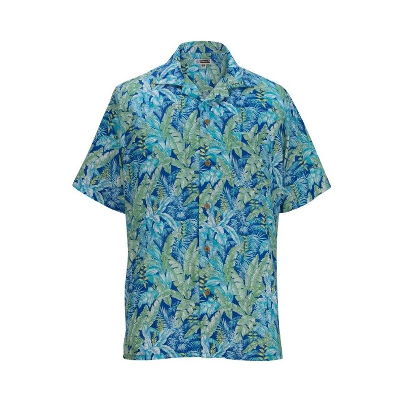 Edwards Tropical Leaf Camp Shirt offer vibrant colors and prints in a traditional camp shirt. Perfect for resorts or even medical therapy offices. The Cotton rich fabric and styling offers all day comfort. Companion style is #1034