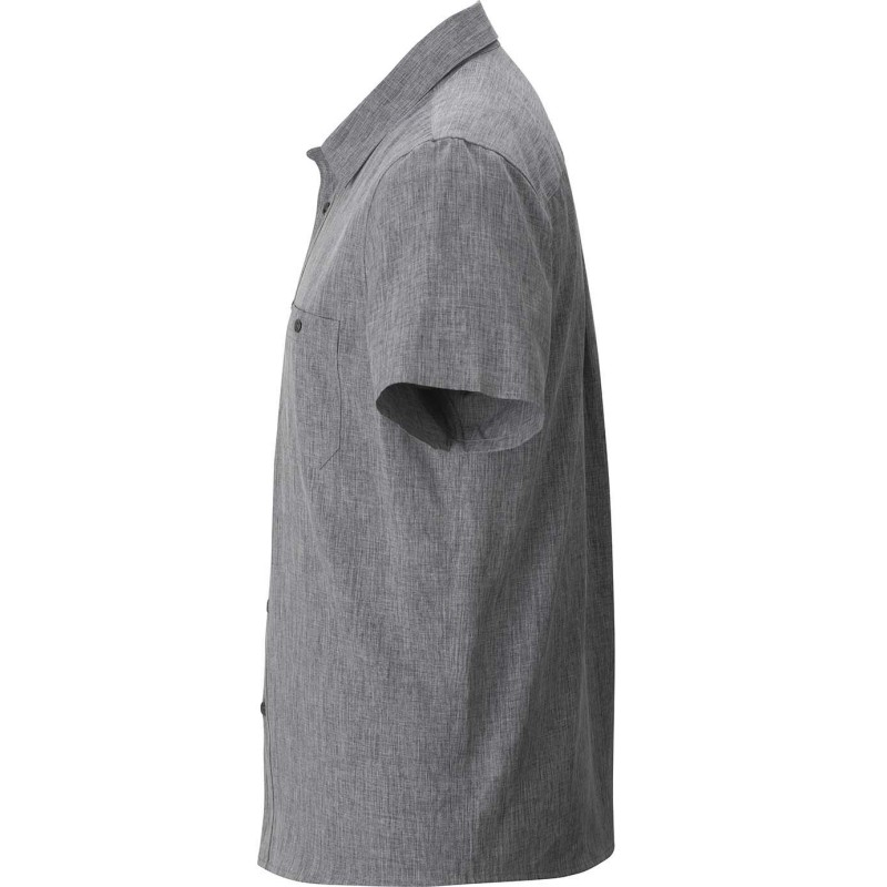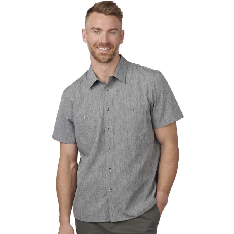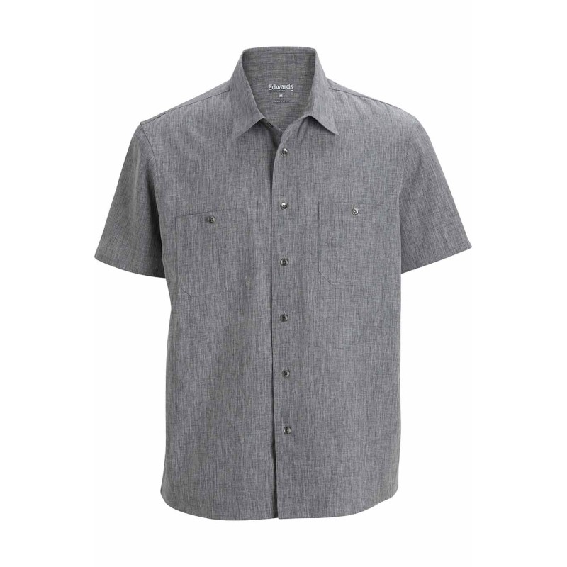 100% Polyester Ultra-Light M?lange; 4.4 oz. Traditional fit Ultra-Light fabric with a m?lange pattern accent this soft and supple camp shirt 3M Scotchgard™ finish protects the fabric and adds soil release properties Moisture wicking fabric keeps you dry Double button-down chest pockets; metal buttons; back yoke and slightly curved hem IL Friendly Men?s Sizes: S-3XL; 4XLT-6XLT