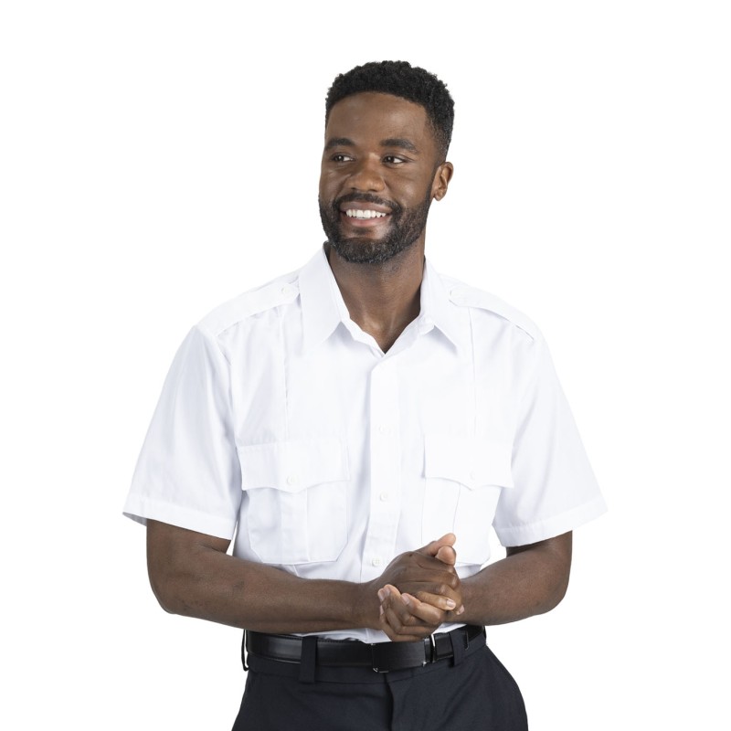 Edwards Security short sleeve shirt. Durable and functional; this polyester/cotton shirt is a mainstay for any security program. This shirt stands up to demanding wear with six design features that respond to technical security requirements. Companion style is #1276