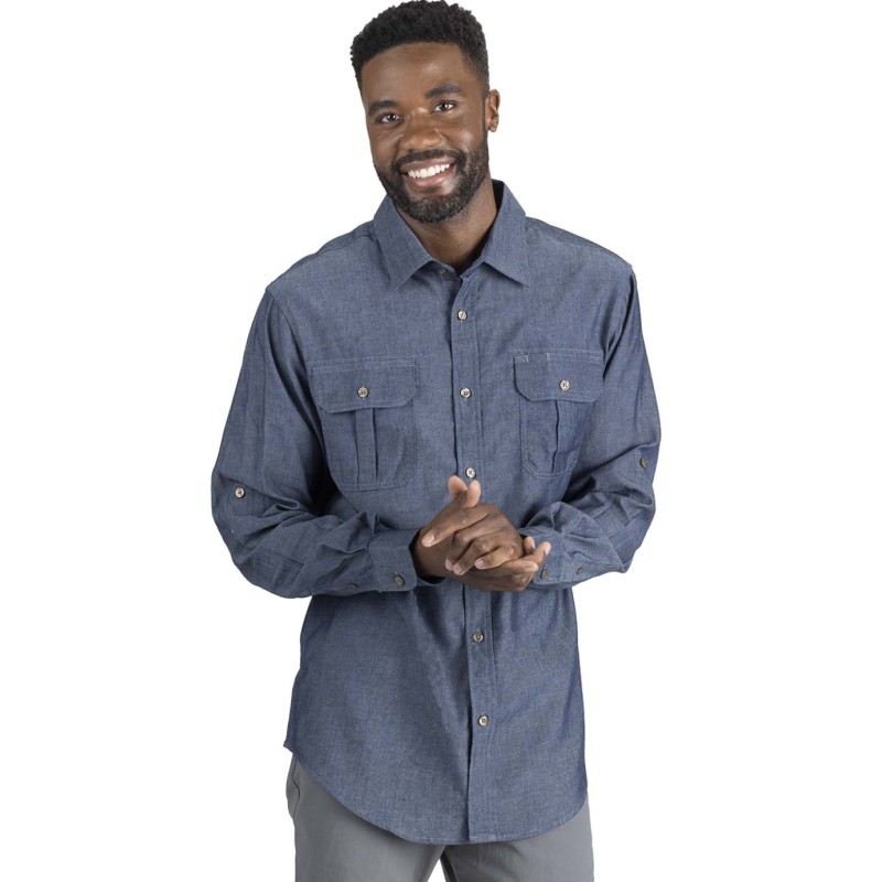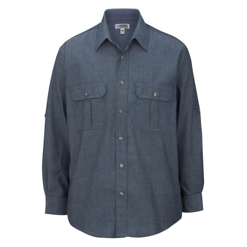 Edwards Men's shirt is built for outdoor adventures and indoor style. This chambray shirt is ideal for work; play and special events. A perfect alternative to traditional denim. Embroiders well. Companion style for her is #5298.