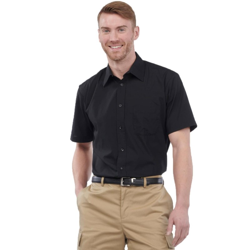 Edwards Men?s Essential Broadcloth shirt stands up to demanding wear and is certified STANDARD 100 by OEKO-TEX?; tested for harmful substances. Perfect for healthcare; security; transit; delivery service and restaurant programs. Embroiders well. Ladies companion is #5355.