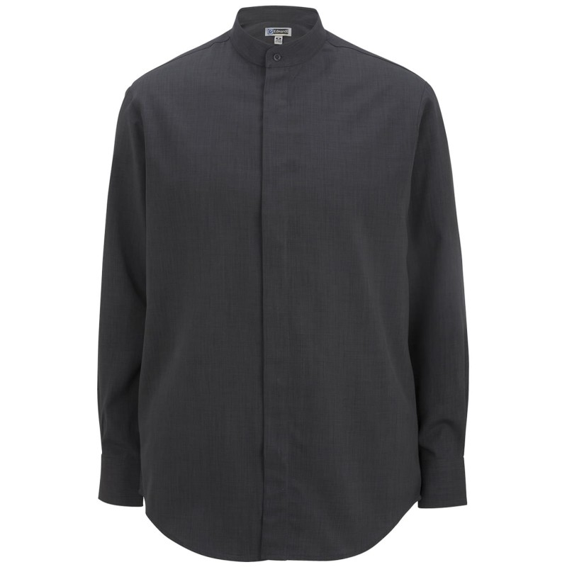 Edwards This men's batiste banded collar shirt offers all day comfort and on trend fashion details. This modern fit has a hidden placket and the fabric is accented with an understated contemporary weave pattern. Scotchgard™ finish for easy stain release. Perfect for resorts; restaurants or hotel properties. Embroiders well. Companion style is #5392