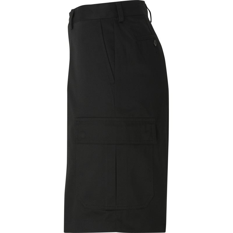 Edwards Our men's utility chino cargo short with 11” inseam is a blended twill with a soft hand. The deep cargo pockets with snap closure lets you store most anything. Embroiders well. Ladies companion is #8438.
