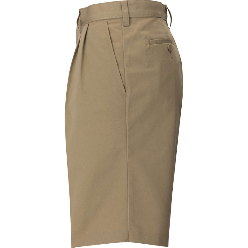 Edwards Our men's utility chino pleated front short with 11" inseam is a blended twill with a soft hand. Loaded with performance features including soil release and moisture wicking.